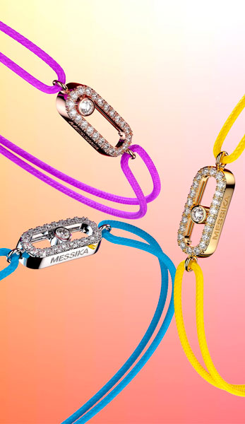 Messika detta le regole di styling per esaltare al massimo i nuovi bracciali Move Uno Cord: il nero darà il meglio di sé abbinato a tonalità come il bianco ottico, per un contrasto glamour, e il rosso, per un twist passionale; il blu navy brillerà accanto a tinte delicate quali rosa antico o verde acqua, ma anche vibranti come il giallo, per outfit vitaminici dall’allure casual chic.