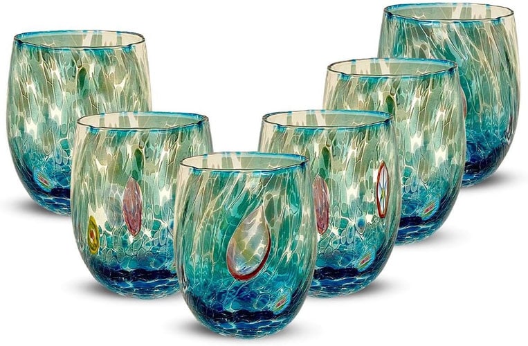 Bicchieri in vetro di Murano - Prezzo € 72 - Ogni bicchiere di questo set Gocce di Murano è un piccolo capolavoro, soffiato a mano in vetro di Murano. Il design, evocativo di una pioggia arcobaleno, sprigiona un'energia cromatica che impreziosisce ogni tavola. Un oggetto non solo di utilità, ma di vero e proprio stile, certificato per la sua autenticità da Gocce di Murano. Lo trovi su Amazon