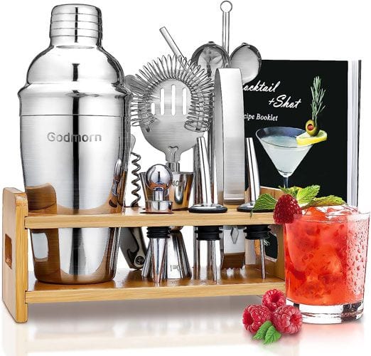 Cocktail Shaker Set – Trasforma la tua casa nel locale più in voga della città con il set professionale Godmorn. Tutto l’occorrente per preparare cocktail da barman provetto, con 14 strumenti essenziali più ricettario. Shaker, strainer, measurer e accessories in acciaio inox di qualità. Mescola, agita, decore servi drink perfetti! Con il set Godmorn hai a portata di mano gli attrezzi del mestiere per preparare cocktail superlativi come un vero bartender. Impressionerai i tuoi ospiti con gustose alchimie e l’atmosfera di un raffinato lounge bar. Il tuo bancone è pronto per shakerare emozioni!