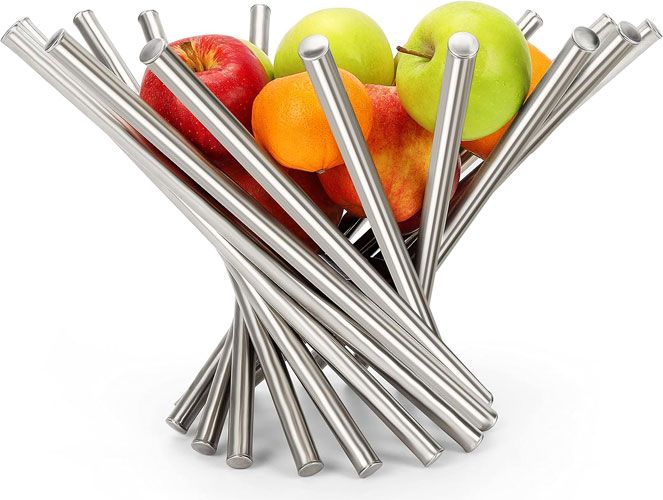 Porta Frutta da Tavolo Moderno – Un giardino di delizie sulla tua tavola. Il portafrutta Belle Vous è uno scrigno contemporaneo che esalta frutta e verdura in tutta la loro freschezza. Forme essenziali in acciaio inox e design traspirante per mantenere intatto profumo e sapore. Da centrotavola prezioso a soluzione salvaspazio, questo cestino dalle linee moderne impreziosisce con charme tavola e cucina. Il piacere di una frutta sempre al top, racchiuso in raffinate geometrie.