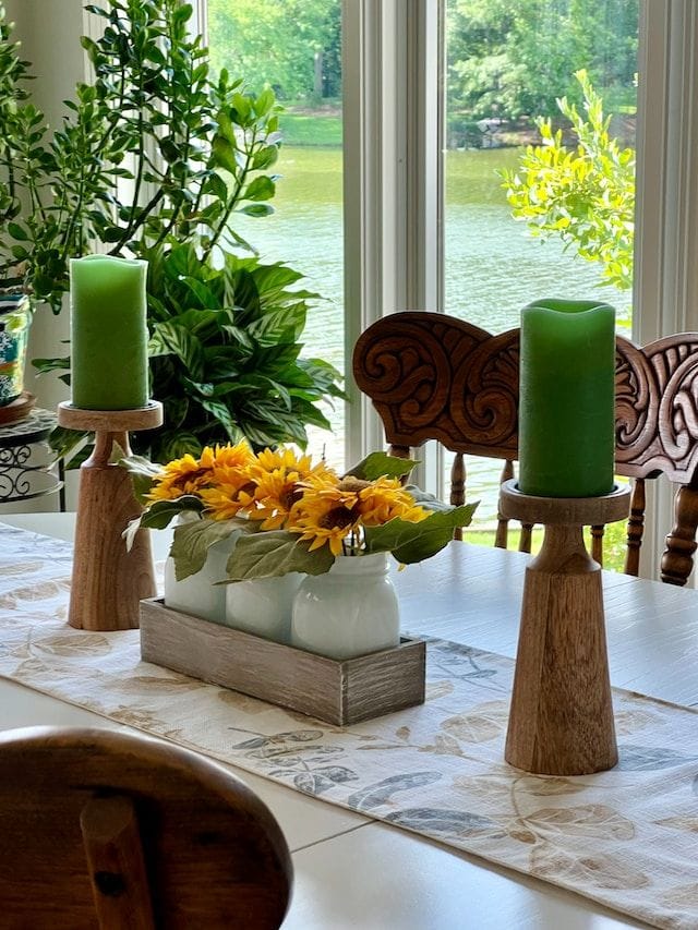 2. Candele e Fiori: Disponi candele o lumini lungo il centrotavola, intervallandoli con fiori o rametti. Questo creerà un tocco romantico e un’atmosfera accogliente.