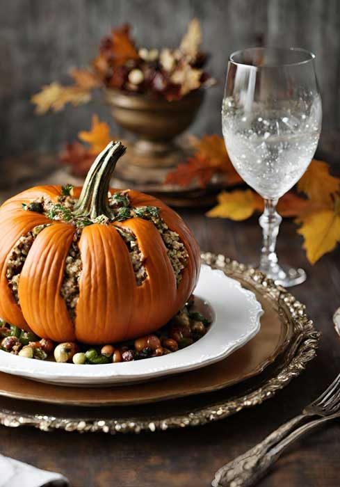6. Ortaggi di Stagione: Per i segnaposto, usa piccole zucche o altri ortaggi di stagione dipinti con pennarelli o tempere. La natura diventa protagonista sulla tua tavola.