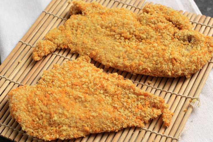 - Prendiamo la carne e condiamola con sale e pepe. Passiamola poi prima nella farina e poi nell’uovo. In un piattino mettiamo il panko ed impaniamo per bene. Mettiamo l’olio per friggere in padella ed attendiamo che arrivi a temperatura, circa 170 gradi.
