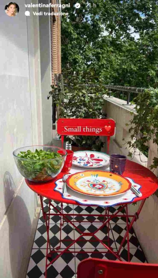 Proprio come Chiara Ferragni, anche Valentina è particolarmente attiva sui social ed è seguita da milioni di persone. Per questo interagisce con loro, condividendo gran parte della sua vita privata e soprattutto professionale. Nelle scorse ore ha mostrato una parte della sua casa, ovvero il balconcino, che utilizza per mangiare circondata da un bellissimo paesaggio. Nella storia pubblicata su Instagram, però, non sono passati inosservati i piatti.