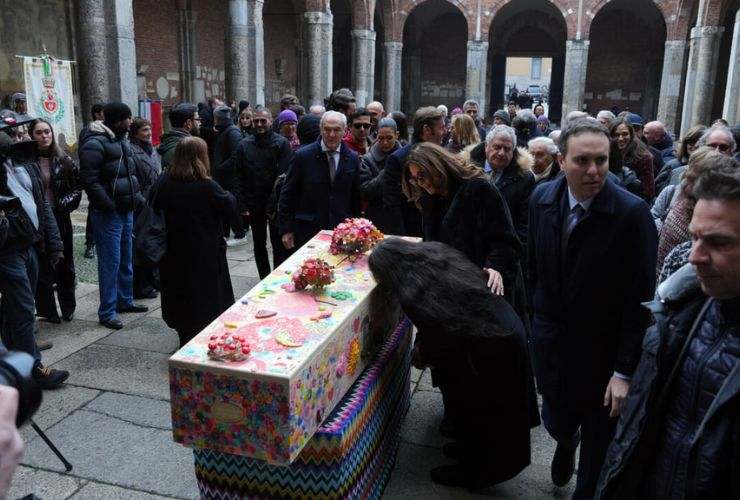 Rosita Missoni, icona della moda italiana e pioniera del Made in Italy, è stata salutata per l’ultima volta nella Basilica di Sant’Ambrogio a Milano, con una cerimonia tanto emozionante quanto rappresentativa del suo spirito creativo. La bara, decorata dai nipoti con cuori, fiori e sirene e avvolta in un drappo con le celebri fantasie geometriche della Maison, è stata il simbolo di un’esistenza dedicata alla bellezza, al colore e alla famiglia.