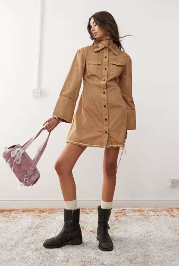 Cosa hai organizzato per San Valentino? Ad esempio, una serata al cinema non è mai solo un film e un sacchetto di popcorn. È l’occasione per un incontro informale, ma con quel tocco di stile che fa la differenza. Per l’occasione, un vestito camicia corto color marrone, come quello proposto da Reclaimed Vintage, potrebbe fare per te. Il colletto ampio e le cuciture a contrasto danno un’aria raffinata, mentre la chiusura con bottoni e le tasche con patta donano un accento molto pratico e comodo. La coulisse sul fondo permette di giocare con la vestibilità, rendendolo ancora più versatile. Per completare il look, si possono abbinare stivaletti in pelle nera, una borsa a tracolla minimalista e un paio di orecchini a cerchio dorati, per un tocco di luce in più.
