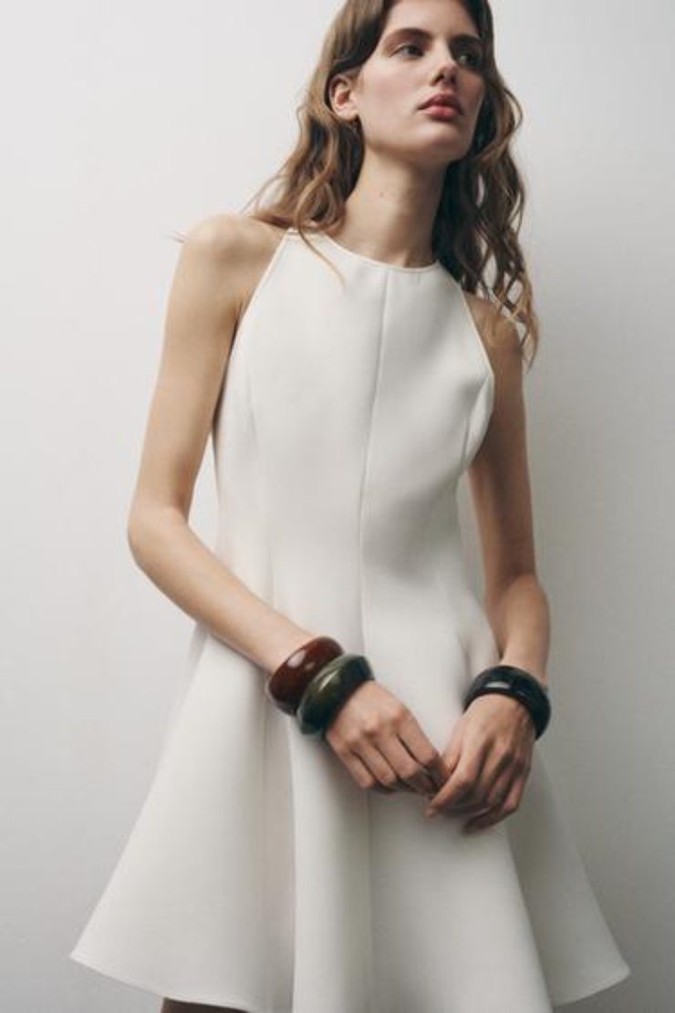 Per chi amasse qualcosa di più sobrio e adatto anche alle over 35, sarà perfetto, invece, il vestito medio-corto con collo halter e spalle scoperte. Questo abito ha un design molto meno sbarazzino e più formale ma non perde la sua eleganza e femminilità. Disponibile in tre colori: bianco, marrone e nero. Anche in questo caso un passpartout dalla mattina fino alla sera al momento in offerta a soli 25,95 euro sul sito Zara.