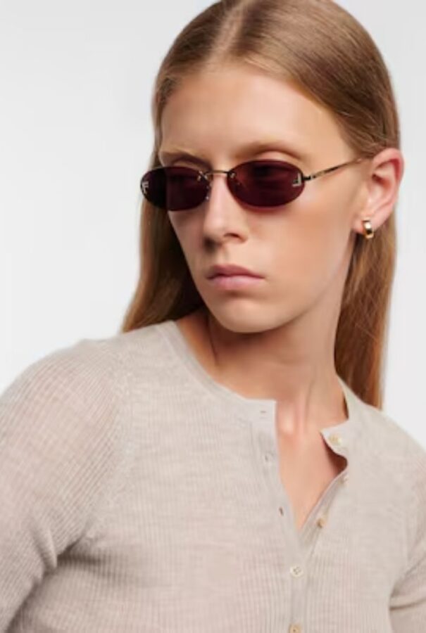 Le passerelle sono piene di occhiali con queste caratteristiche. Partiamo con gli occhiali di Fendi con lenti viola e una montatura dorata che gridano “stile” a ogni sguardo. Sono proprio quel tocco di colore che può trasformare anche il look più basic. Immagina di abbinarli a un maglione grigio e dei pantaloni neri, un outfit semplice ma con un accento deciso che non passa inosservato. Se ti piace giocare con gli accessori senza rinunciare alla classe, questi occhiali sono perfetti per te.