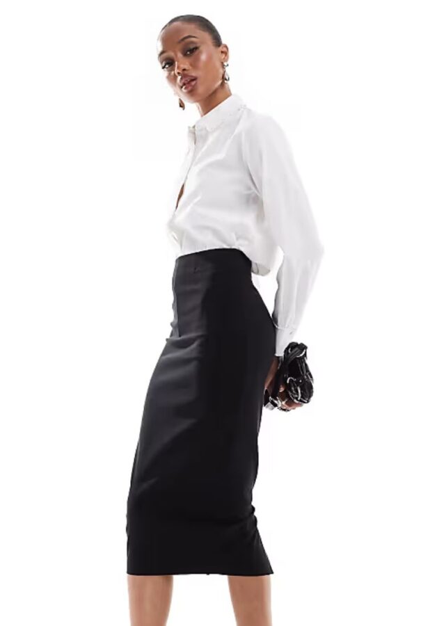 Il modello che trovi su ASOS è perfetto per questo. Con una vestibilità fasciante e uno spacco posteriore che non esagera, è il tipo di gonna che ti fa sentire subito a posto, ma senza rinunciare al comfort. È proposta a circa 22 euro, un prezzo davvero competitivo per un capo che ti accompagnerà in ogni stagione.