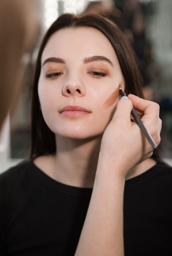 Il contouring è uno degli strumenti più furbi che abbiamo e di cui parliamo adesso. Il punto è capire bene dove appoggiare il colore, dove farlo scivolare piano. Per esempio, basta una linea sotto lo zigomo per dare l’idea di un viso più pieno, più morbido. Ma se quella stessa linea la spostiamo leggermente verso l’alto, cambia tutto: il viso si affina, gli zigomi sembrano salire, lo sguardo si apre.