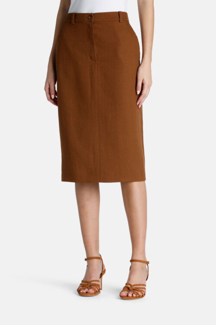 Iniziamo da un modello molto semplice che ben si presta alla tendenza dell’uso del marrone di questa primavera: gonna tubino a vita alta, poggia dolcemente sulla linea dei fianchi e l’abbottonatura centrale con zip richiama il più tipico sapore dello stile anni 60. Soddisfa diversi stili, lo spacco centrale posto sul retro poi concede un movimento sfizioso e delicato, dandoci la possibilità di sfruttarla su t-shirt, camicette di lino e seta, ma anche t-shirt giovanili a stampa.