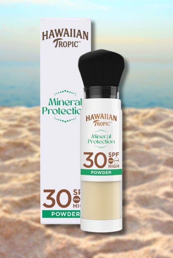 Passando a un’alternativa ancora più mirata, potresti optare per le polveri minerali, come quelle di Hawaiian Tropic, con SPF 30. Si tratta di un prodotto che si applica direttamente sopra il trucco, perfetto per assorbire l’eccesso di sebo e opacizzare l’incarnato.