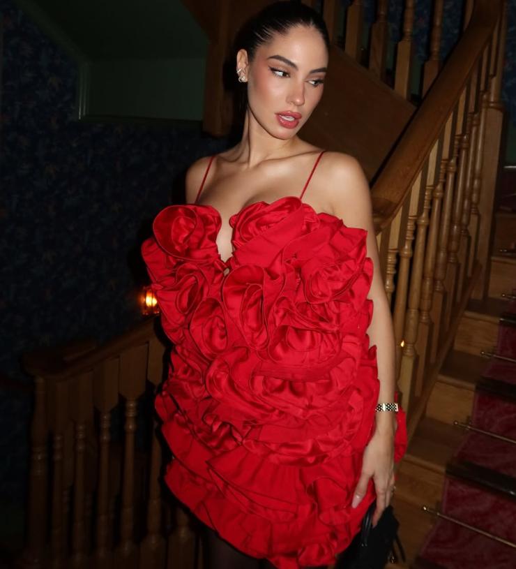La diretta interessata ha rispedito i pettegolezzi al mittente, puntando l’attenzione sul suo meraviglioso vestito rosso. Sul suo profilo Instagram, è possibile trovare delle foto che la ritraggono proprio così. Ha deciso di sfoggiarlo durante un evento londinese di Jo Malone. L’abito è decisamente particolare. La stoffa è stata assemblata per dare vita a delle stupende rose rosse. Ricoprono tutto il vestito, dalla scollatura all’orlo della minigonna.