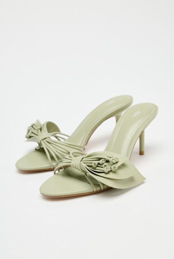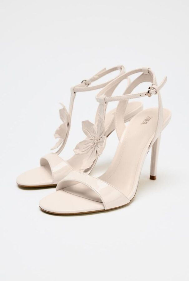 E infine, la sorpresa. Questi sandali verdastri, con decorazioni floreali sottili e tacco da 8 cm, sono in saldo: da 45,95 euro a 25,95 euro. Se ti piace giocare con i colori o se il tuo matrimonio ha un tema un po’ meno tradizionale, possono funzionare alla grande.