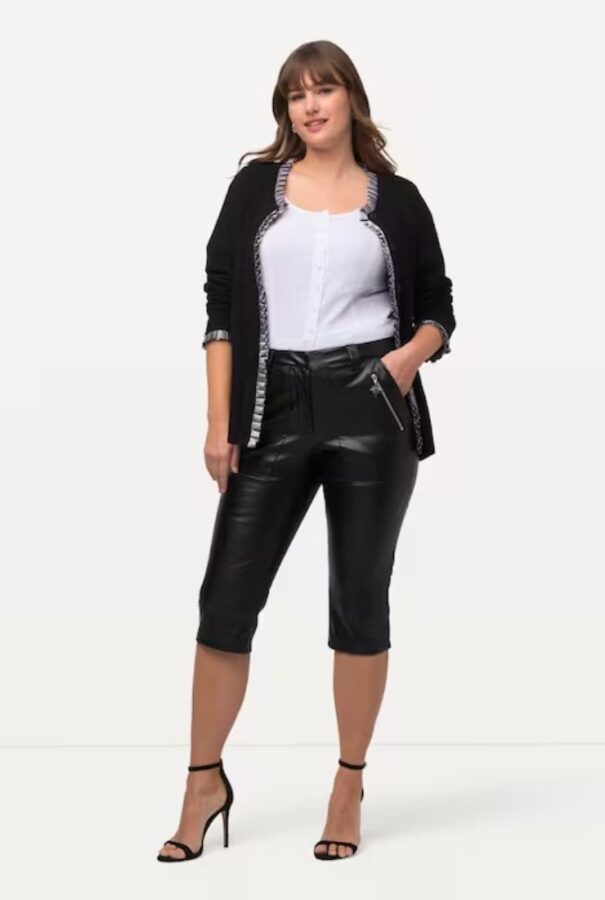 Ma se l’idea è di abbinare due pezzi, e magari giocare un po’ col contrasto maschile-femminile, allora i pantaloni capri modello Sienna di Ulla Popken sono un’opzione furba. Sono in similpelle, morbidi al tatto, con dettagli simpatici come i ciondoli a forma di foglia sulle zip. Hanno un taglio aderente ma non costringente, giusto per dare forma senza esagerare. Il prezzo? Meno di 40 euro. Ideali per un outfit urbano, magari con un blazer destrutturato o un maglioncino sottile se la stagione lo consente.