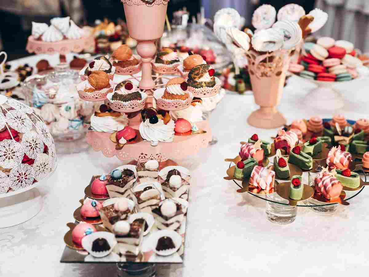 Se invece vogliamo qualcosa di più ‘sbrigativo‘ o comunque di meno impegnativo, adagiamo su un bel tavolo lungo una meravigliosa tovaglia bianca o rosa pallido, magari con qualche ricamo o dettagli in pizzo. Disponiamo poi un bel buffet di dolci assortiti e qui possiamo optare per cupcakes, muffin con frosting, biscotti secchi, ma anche qualche torta farcita con crema al burro. Come beverage prosecco, vino e analcolici andranno benissimo.