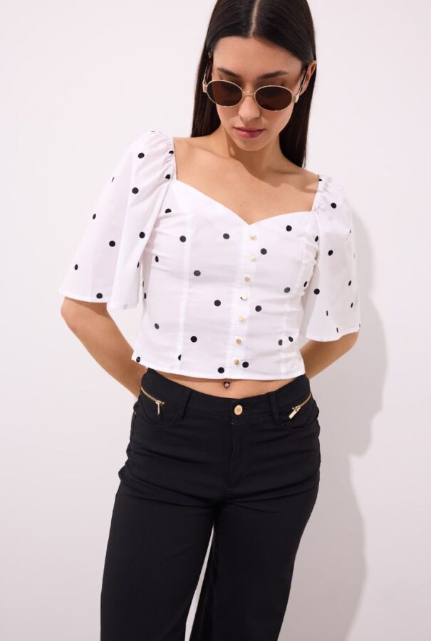 Infine, una blusa che ha qualcosa di speciale: quella di Mohito, con maniche a palloncino e scollatura a cuore. Costa 24,99 euro, è in cotone quasi del tutto, e ha un taglio ben definito che la rende perfetta anche senza troppi accessori. Si nota subito, ma non è un capo eccessivo. Funziona con jeans a vita alta, con gonne dritte, o da sola come pezzo principale del look.