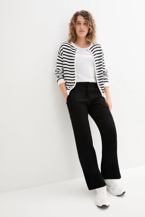 Passando ai pantaloni, quelli in viscosa di Bonprix sono una vera sorpresa: 18,99 euro per un paio di palazzo in tessuto crinkle, leggerissimi ma non troppo larghi. Hanno la vita comoda, non stringono, cadono dritti e slanciano senza impegno.