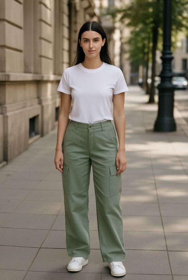 Attenzione però a non sbagliare tono. Non tutto si sposa bene con il verde salvia. Colori troppo accesi – come rosso vivo o verde prato – possono risultare dissonanti. Anche il nero, se usato male, rischia di spegnere la freschezza del salvia. Meglio optare per tinte più morbide come il panna, il cammello o il blu scuro. E se vuoi vestirti tutta di verde salvia dalla testa ai piedi, fallo, ma cambia le texture. Lino con seta, cotone con pelle vegana, lucido e opaco. Così l’insieme resta dinamico e non diventa piatto.