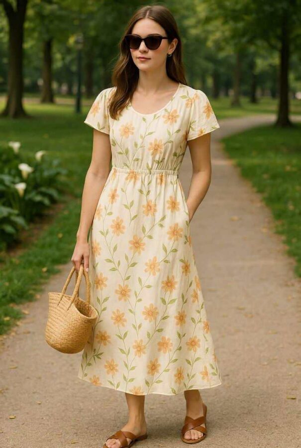 Il cotone, dal canto suo, è una certezza. Ma anche qui, dipende. C’è il cotone che respira e quello che trattiene. La differenza sta nello spessore, nella lavorazione, nella mescola. Per l’estate funziona meglio quello leggero o garzato, che scivola meglio sulla pelle e non si incolla con il sudore. La sua forza è la versatilità: t-shirt, chemisier, gonne midi, top minimal… sta bene con tutto e regge bene il lavaggio frequente. Ma se lo scegli troppo rigido, rischi l’effetto armatura, soprattutto nei giorni più umidi.