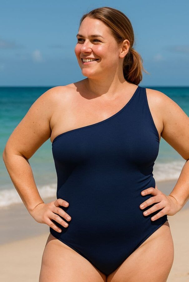 Il triangolo inverso, invece, ha una struttura opposta: spalle più ampie rispetto ai fianchi. Qui il gioco sta nello spostare l’attenzione verso il basso, usando slip con colori forti, fiocchi, nodi, o fantasie. I costumi interi monospalla funzionano bene perché spezzano la linea delle spalle e aggiungono un po’ di asimmetria.