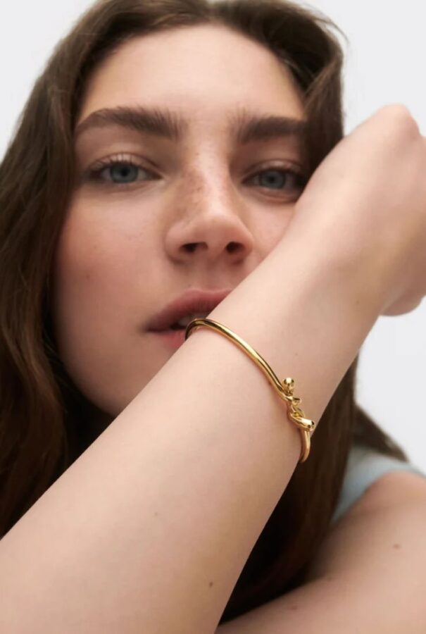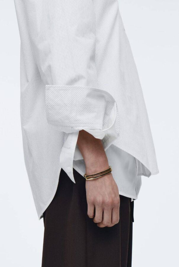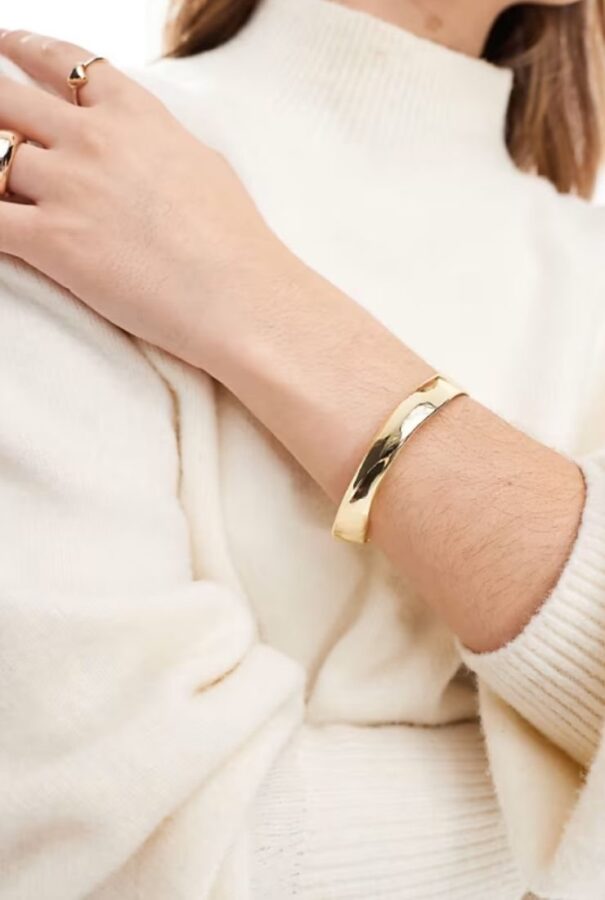Mango punta su un effetto oro martellato, con superfici irregolari e brillanti che catturano la luce in modo dinamico. I modelli stanno tra i 19 e i 25 euro, ideali per iniziare a costruire una collezione. COS e Arket giocano con volumi più marcati, ma sempre essenziali, mantenendo l’equilibrio tra forma e sobrietà.