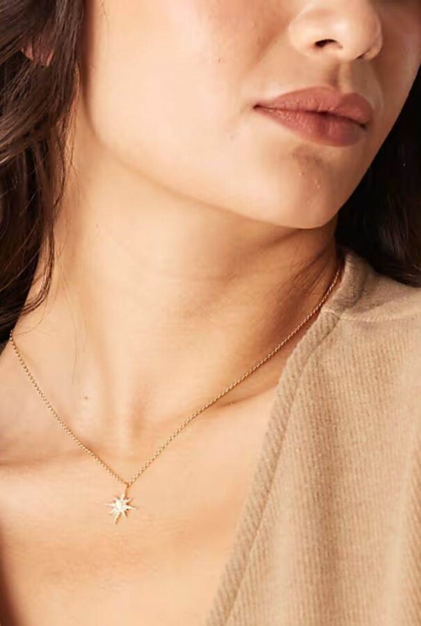 La sua forza è il dettaglio piccolo ma simbolico. La stellina con l’opale centrale ha qualcosa di personale, quasi narrativo. È una collana che può diventare parte del quotidiano proprio perché non stanca. Il metallo dorato ha una finitura calda e il design è semplice ma curato.