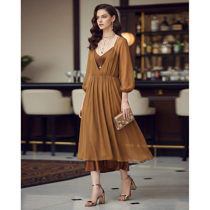 Se invece tu e il tuo si spera futuro partner optate per un aperitivo sul mare, magari in un localino della riviera o della litoranea, puoi giocare molto con gli strati. Ad esempio noi ti proponiamo una doppia veste, una con scollo molto vistoso a V in seta leggera che quindi ti aiuterà a generare un movimento sensuale, la seconda invece più lunga ma maggiormente coprente, sempre con scollo a V ma contenuto.