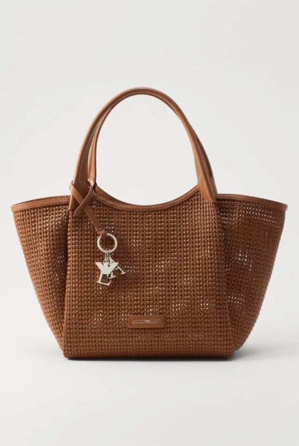 Tra i modelli che si muovono bene in questo nuovo equilibrio ci sono alcune proposte ben calibrate. Emporio Armani firma una shopping bag ampia, in eco-pelle, con un logo traforato sobrio ma riconoscibile. La Durini Shopper, nel tono caramello, gioca su un’eleganza sottile, a metà tra formale e rilassato.