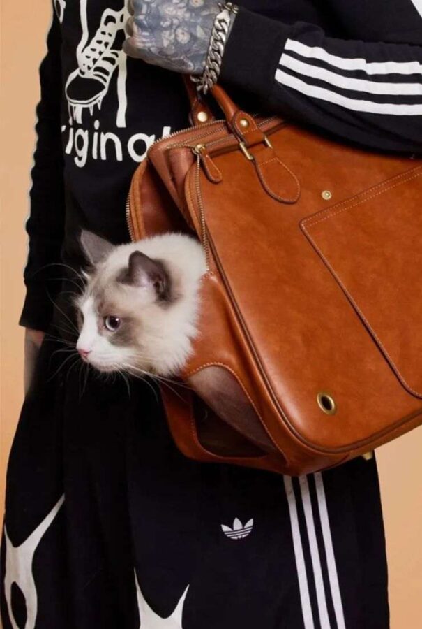 La collezione include t-shirt a tre strisce per animali in vari colori – verde, blu, giallo – realizzate in materiali simili a quelli delle adicolor per umani. Oltre ai capi d’abbigliamento, ci sono accessori più strutturati, come una borsa da trasporto effetto pelle con inserti in rete pensata per piccoli animali domestici, che unisce funzione e stile. Completano la linea dei collari in pelle bovina, impreziositi da borchie e medaglietta in metallo con logo Trefoil, chiaro richiamo all’identità streetwear del brand.