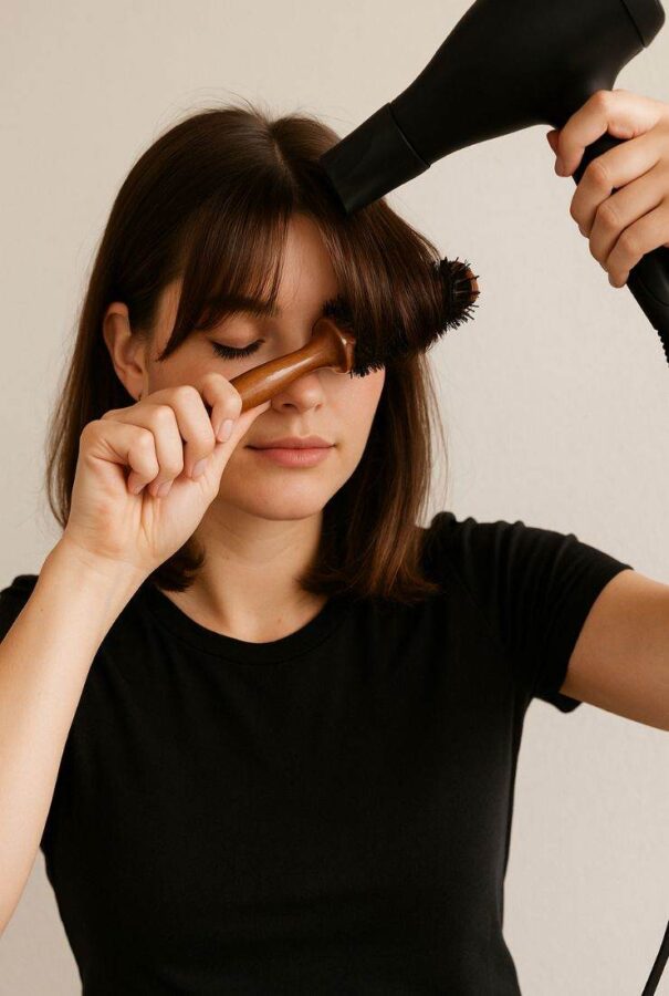 A questo punto si può procedere con il resto dello styling. Ma il vantaggio è che la frangia è già sistemata, senza bisogno di passare mille volte la piastra o cercare di salvare la situazione con lo spray. È morbida, aperta, con quella curvatura naturale che segue la forma del viso senza appiattirla. E il bello è che più lo fai, più ci metti meno tempo. Diventa automatico, come farsi la riga.