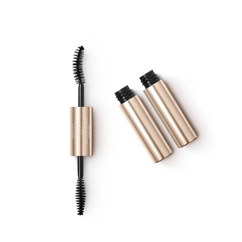 Abbiamo poi il mascara Beauty Essenzials 3 in 1, un particolare prodotto in grado di allungare, curvare e generare un effetto ‘panoramico‘ alle ciglia: dotato di 2 applicatori, il primo serve per conferire volume, il secondo per curvare a dovere le ciglia dritte, combinando i due si ottiene una formula appunto panoramica, ovvero ciglia folte, lunghe dal lato interno al lato esterno dell’occhio.