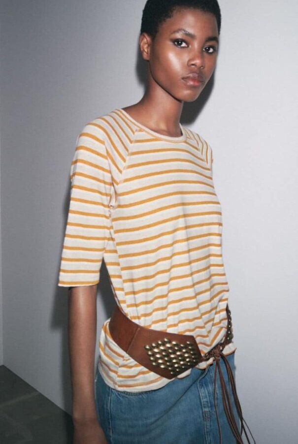 Si infila al volo, funziona con quasi tutto, e sa dare quel tono un po’ disinvolto anche quando sei di corsa fra ufficio, metrò e gelato preso al volo. Il bello è che non serve nemmeno cercare troppo per trovarne una che stia bene. La T-shirt a righe è ovunque, declinata in mille tagli, colori, stili. Dalla classica bianco-blu a quelle più grafiche o pastello che la portano sul terreno urbano, si lascia interpretare senza perdere il suo spirito marinaro. E nel marasma di tendenze che cambiano ogni due settimane, questo piccolo dettaglio – le righe, tutte lì, dritte e semplici – riesce ancora a tenere insieme eleganza e praticità.