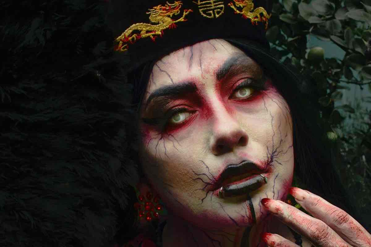 Vuoi trasformare il tuo smokey eyes in qualcosa di più “Halloweenesco”? Aggiungi un tocco artistico! Puoi applicare pietre nere o rosse ai lati degli occhi, disegnare piccole ragnatele con un eyeliner sottile o persino creare l’effetto occhio “lacrimante sangue” con del make-up rosso liquido. Se il tuo costume lo permette, puoi estendere il trucco fino alle tempie o alle guance, per un effetto gotico e d’impatto.